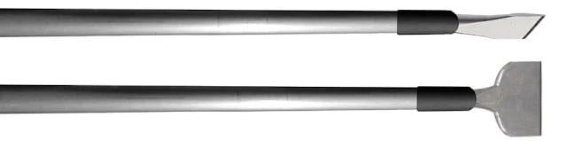 3 meter lang, 25 mm dia og 1,5 mm gods, 30 cm bredt hode med 40mm dia/3mm gods. Til å slå ned is med. Kan med forsiktighet brukes med Teleskopstangen - gir da en rekkevidde på 10 meter.