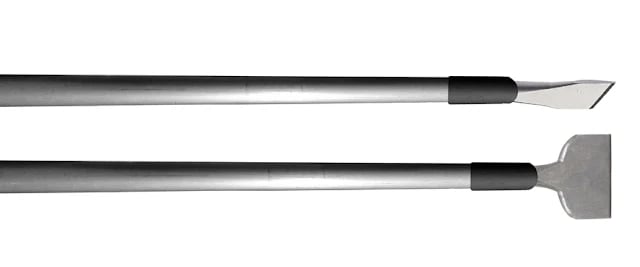 3 meter lang, 25 mm dia og 1,5 mm gods, 30 cm bredt hode med 40mm dia/3mm gods. Til å slå ned is med. Kan med forsiktighet brukes med Teleskopstangen - gir da en rekkevidde på 10 meter.