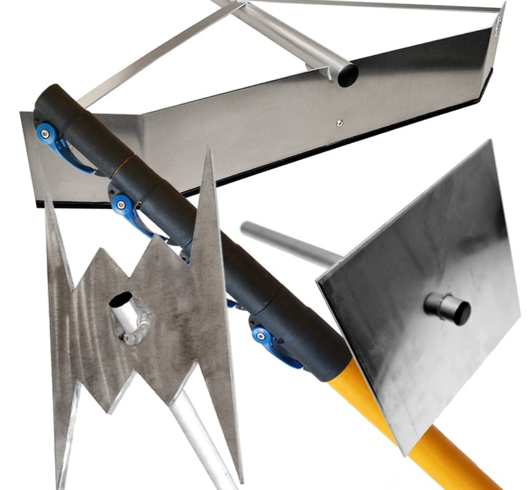 75 mm bred ishakke med 3 m langt aluminiumsrør i 3 mm gods. Brukes til å støte løs is på fasade, takutspring, takrenner og i tunneler osv. Brukes ikke med Teleskopstangen.